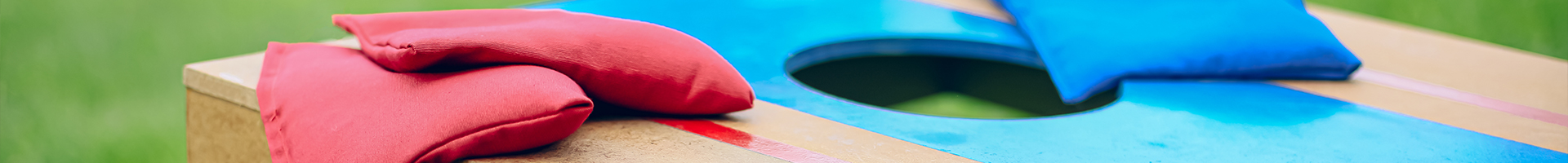 Cornhole (also known regionally as sack toss, or bags) is a lawn game in which players or teams take turns throwing fabric bean bags at a raised, angled board with a hole in its far end. The goal of the game is to score points by either landing a bag on the board (one point) or putting a bag through the hole (three points). Each match is played to 21 points with no bust. Boards are set 27 feet apart.